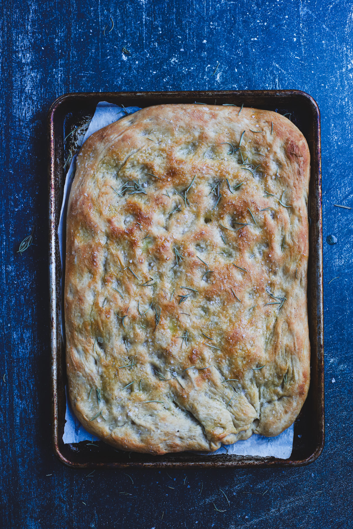 - Bake for ~30 minutes, or until the focaccia is deeply golden on top with crisp edges.